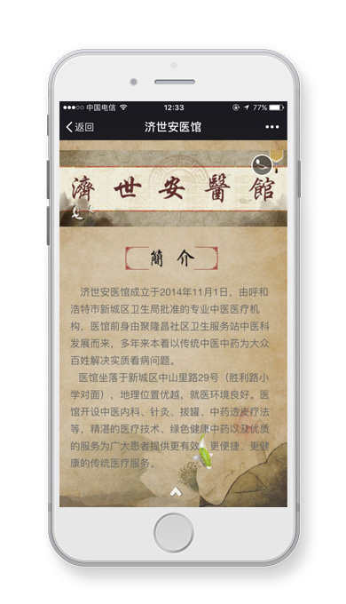 內(nèi)蒙古濟(jì)世安醫(yī)館微信公眾平臺(tái),呼搜網(wǎng)從策劃到開發(fā)上線全程提供服務(wù)。