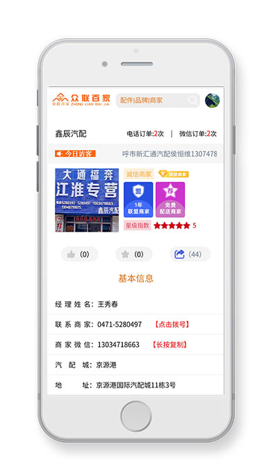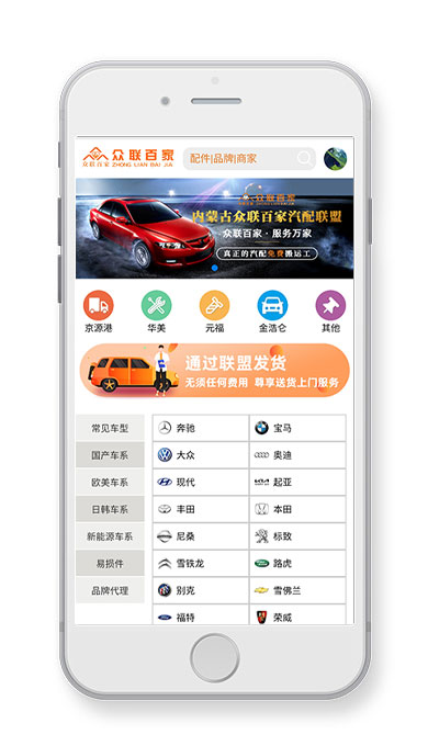 內(nèi)蒙古眾聯(lián)百家汽配聯(lián)盟是公眾號應(yīng)用,主要經(jīng)營汽配行業(yè),聚合呼和浩特市所有大小汽配城,商家入駐,汽車配件,線上電話咨詢,實(shí)時(shí)信息推送,呼搜網(wǎng)絡(luò)負(fù)責(zé)技術(shù)開發(fā)。