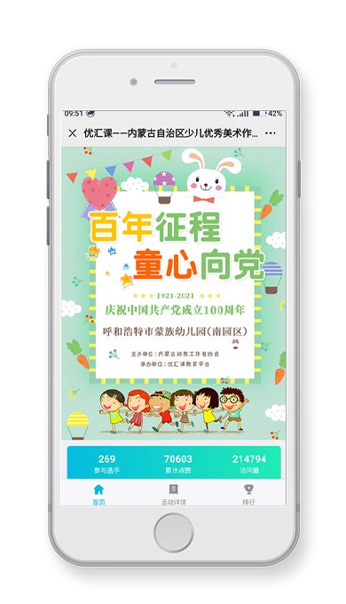 為慶祝中國共產(chǎn)黨成立100周年,由內蒙古幼教工作者協(xié)會藝術專業(yè)委員會主辦、【優(yōu)匯課】網(wǎng)絡培訓平臺承辦的慶祝中國共產(chǎn)黨成立100周年 內蒙古自治區(qū)青少年兒童優(yōu)秀美術作品展示活動正式啟動。本次展示的作品是參加大賽的獲獎作品,活動充分展示新時代青少年兒童藝術修養(yǎng)和綜合素質,抒發(fā)青少年兒童的愛國情懷。